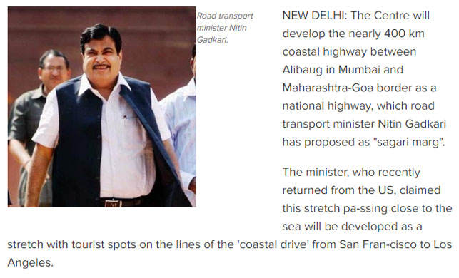 7. Dream project of Govt. of Maharashtra & Goa to connect Mumbai to Goa via Coastal road which will be parallel to Mumbai-Goa NH 17.